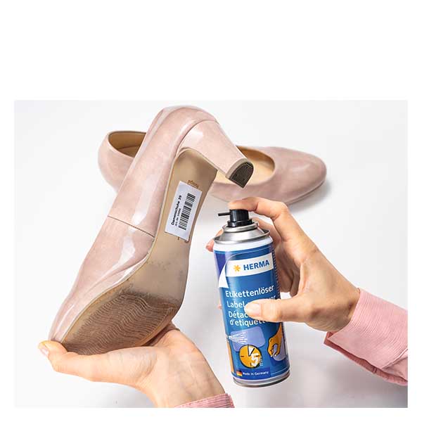 Lo Spray Rimuovi Etichette HERMA rimuove in modo semplice e veloce le etichette autoadesive in carta non rivestita, ad esempio su articoli per la casa, stoviglie o pentole, ma anche su molte altre superfici e oggetti come scarpe o attrezzature tecniche. Nella pratica bomboletta spray, lo spray è particolarmente adatto per etichette di grandi dimensioni o superfici più ampie. Per utilizzarlo, è sufficiente rimuovere il tappo, applicare l'etichetta di carta con la punta fine dello spray e inumidire bene. L'etichetta può essere rimossa senza fatica dopo pochi minuti. Eliminare i residui di adesivo o l'umidità residua del solvente con un panno di carta pulito. Il remover per etichette è prodotto in Germania ed è a base vegetale. Può essere utilizzato senza problemi su tutte le superfici non sensibili come vetro, plastica o metallo. Attenzione alle superfici e ai materiali sensibili e rivestiti: testare su un'area non visibile prima dell'uso.