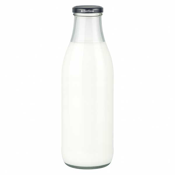 Info sui prodotti "Bottiglia di vetro da 1000 ml + coperchio BioSeal nero UN.."