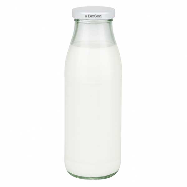 Bottiglia di vetro da 500 ml + coperchio BioSeal bianco UN..